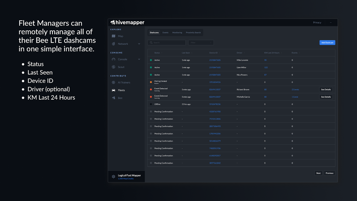 Managing a fleet of dashcams is usually a hassle, but with Bee LTE, it’s almost too easy. Fleet Managers can add, register, and monitor every dashcam through the Dashcam tab, which basically handles the hard parts for you. It’s the kind of simplicity that scales, whether you’re dealing with ten vehicles or a thousand.